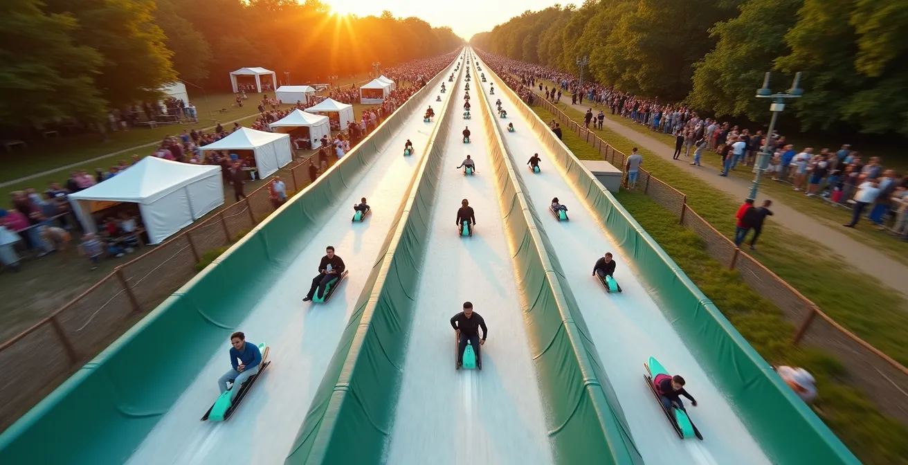 Le marché événementiel français traverse une mutation profonde depuis la crise sanitaire. Les animations passives qui dominaient les séminaires d’entreprise laissent place à des expériences immersives où le participant devient acteur. Dans ce contexte, un équipement inattendu s’impose comme star des animations outdoor : la piste de luge synthétique.